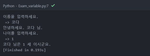 print("{}님은 {} 세 이시군요.".format(user_name, user_age))